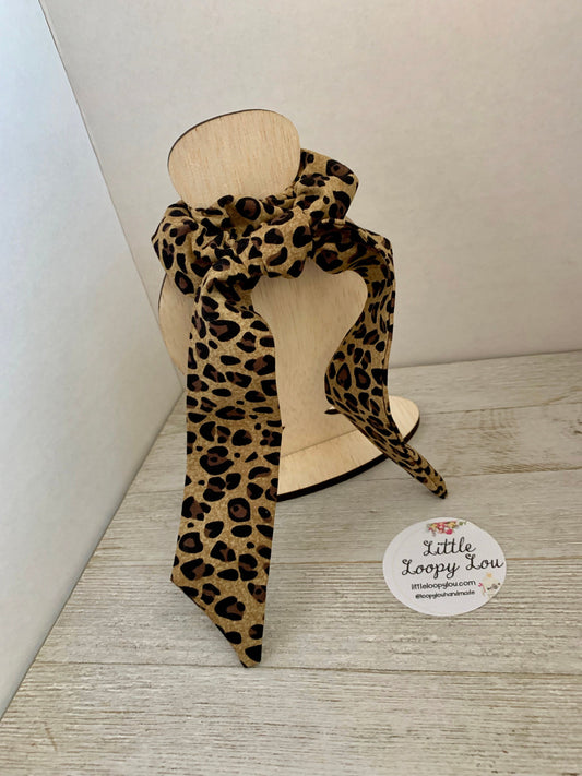 Cheetah Leopard Cotton Scrunchy Hair Tie, Ponytail Holder, Knot Bow, Hair Scarf, Gift for Best Friend, Animal Print