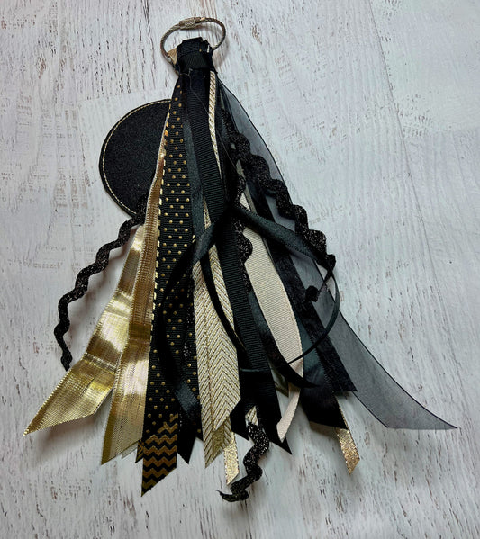 Black and Gold Bag Monogram Ribbon Tassel Keychain, Bogg Bag Accessory