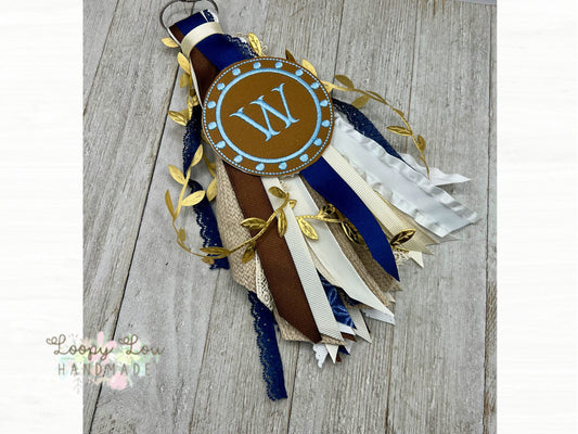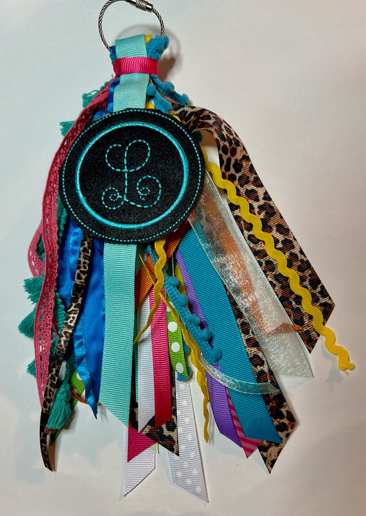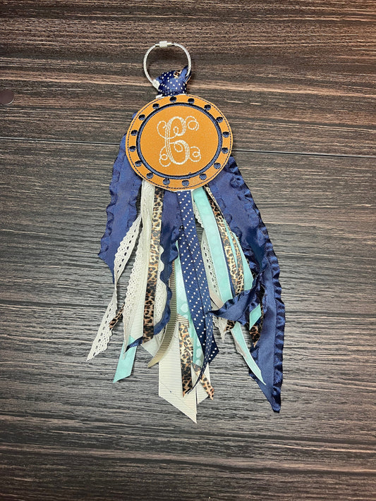 Boho Neutrals, Brown and Blue, Monogram Ribbon Tassel Keychain, Bogg Bag Accessory