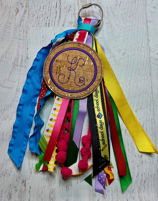 Bright Teacher with Cork Monogram Ribbon Tassel Keychain, Bogg Bag Accessory