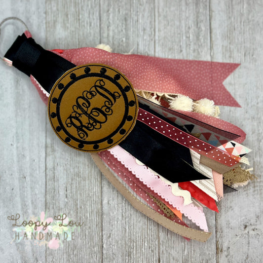 Coral Boho Pink Hippie Monogram Ribbon Tassel Keychain, Bogg Bag Accessory
