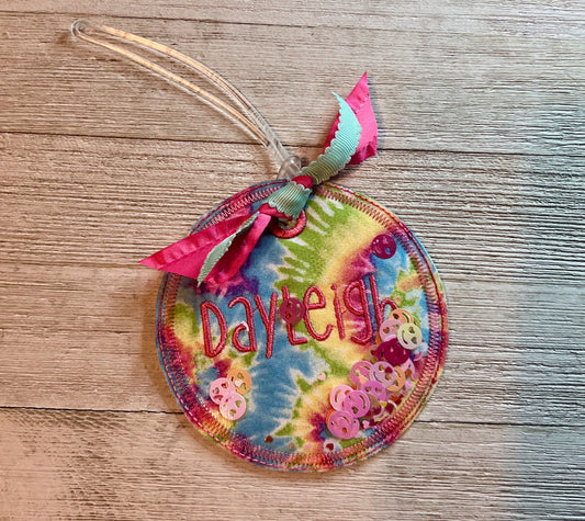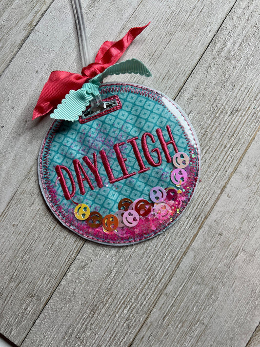 Embroidered Fabric Bag Tags, Glitter Shaker, Personalized Name or Monogram for Kids, Backpack, Luggage Charm